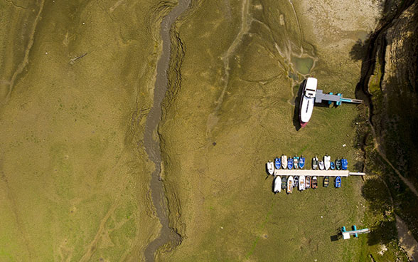 21.09.2018 – La situation d’étiage prononcée qui règne en Suisse reste d’actualité au mois de septembre. Les quelques jours de pluie isolés ont certes permis aux lacs et aux cours d’eau de gonfler momentanément, mais la situation n’a pas été désamorcée pour autant. Si, dans l’est du pays, les débits ont quelque peu augmenté, la Suisse occidentale est de plus en plus confrontée à des niveaux bas, comme en témoigne le lac des Brenets.
