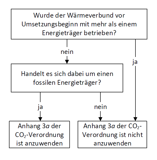 Eine Ausnahme bilden Vorhaben in Programmen, die vor dem Inkrafttreten des Anhangs 3a der CO2-Verordnung (Fassung vom 30. November 2018) beim BAFU eingereicht wurden. Für diese Vorhaben (Wärmeverbünde) gelten die Bedingungen, wie sie in der Programmbeschreibung festgelegt wurden bis zum Ende der Kreditierungsperiode. Nach der erneuten Validierung der Programme gelten für alle Vorhaben in diesen Programmen, dass der Anhang 3a verwendet werden muss, falls die Vorhaben in dessen Geltungsbereich fallen. Das gilt sowohl für Vorhaben, die vor der erneuten Validierung im Programm aufgenommen wurden als auch für alle Vorhaben, die nach der erneuten Validierung in das Programm aufgenommen werden. Somit ist auch für alle Vorhaben, bestehende wie zukünftige, zu prüfen, ob diese in den Geltungsbereich des Anhang 3a fallen.