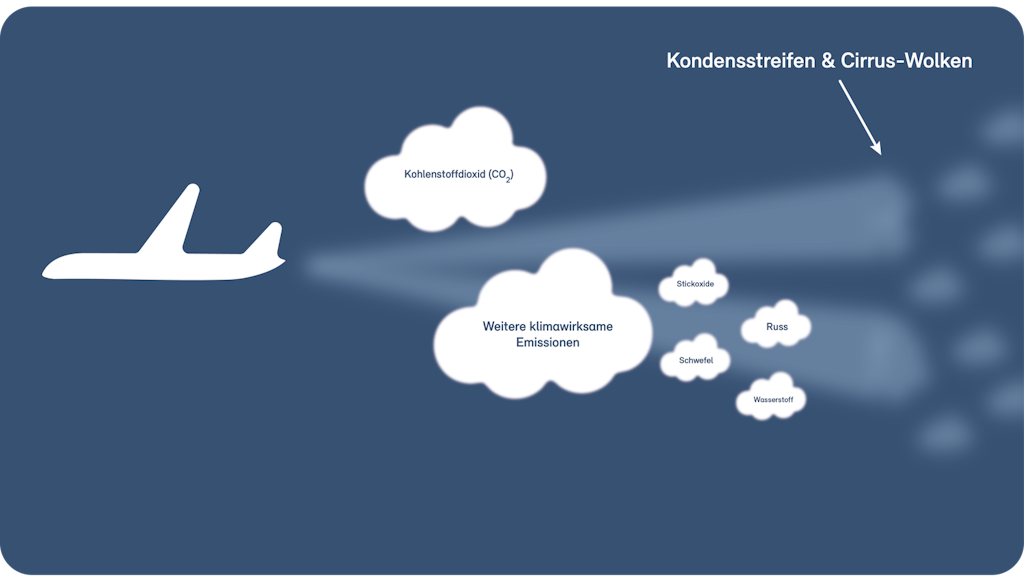 Die Klimawirkung des Flugverkehrs wird nach aktuellem Wissen langfristig durch dessen CO2-Emissionen dominiert. Emissionen des Flugverkehrs enthalten neben den Treibhausgasen aber zusätzlich Schadstoffe, die das Klima wärmend oder auch kühlend beeinflussen.