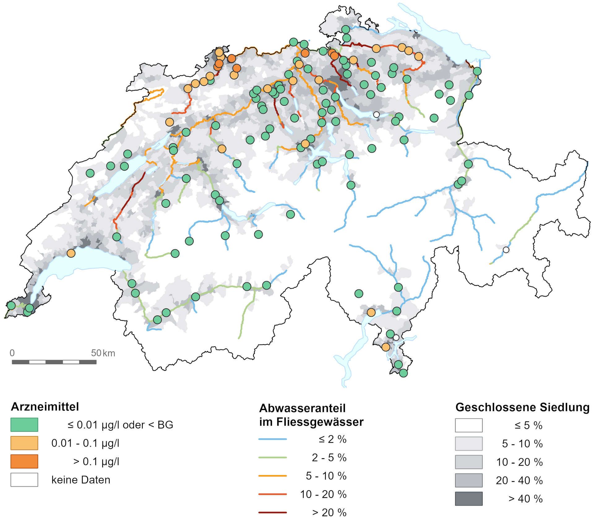 Zu den am häufigsten nachgewiesenen Wirkstoffen gehören das Antiepileptikum Lamotrigin, das Antibiotikum Sulfamethoxazol sowie das Röntgenkontrastmittel Amidotrizoesäure. Arzneimittel treten vor allem an den Messstellen auf, in deren Einzugsgebiet abwasserbelastete Fliessgewässer ins Grundwasser infiltrieren.