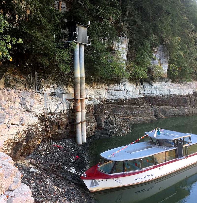 21.09.2018 – Die ausgeprägte Niedrigwassersituation in den Schweizer Gewässern hält auch im September noch an. Einzelne Regentage haben die Flüsse und Seen kurzfristig ansteigen lassen, die Situation aber nicht grundsätzlich entschärft. Während einige Gewässer im Osten des Landes wieder etwas mehr Wasser führen, ist nun auch die Westschweiz zunehmend von tiefen Wasserständen betroffen, wie das Beispiel vom Lac des Brenets zeigt.