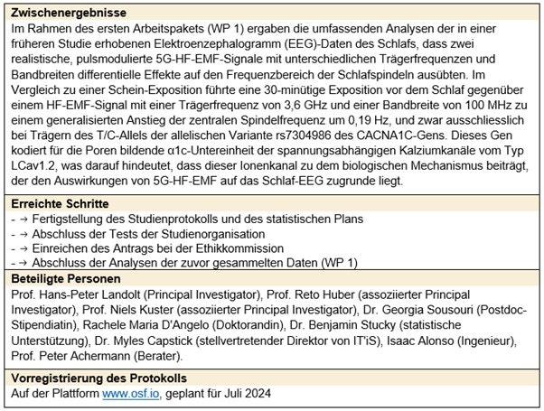 Dieses Projekt liefert möglicherweise neue Einblicke in den biologischen Mechanismus, wie eine 5G-Exposition im Frequenzbereich 1 (d.h. unter 6 GHz) die schlafbezogene Gehirngesundheit beim Menschen beeinflussen könnte.