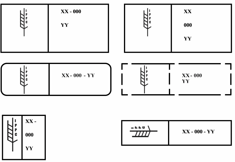 Die Markierung des ISPM 15 - Standards besteht aus zwei Feldern mit Rahmen. Im linken Feld befindet sich das Logo der internationalen Pflanzenschutzkonvention IPPC (International Plant Protection Convention). Im rechten Feld sind Angaben zum Land, die Zulassungsnummer des Betriebs und zur Methode der Behandlung (z.B. HT oder DH) enthalten.
