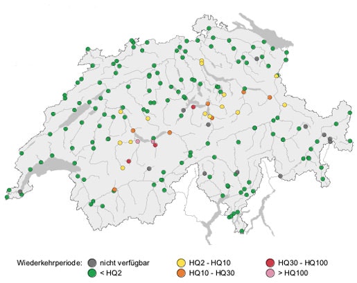 Das BAFU beobachtet und misst die Wasserstände an Schweizer Fliessgewässern und Seen sowie des Grundwassers. Die Daten sowie das Naturgefahrenbulletin und das hydrologische Bulletin werden laufend aktualisiert und im Internet publiziert.