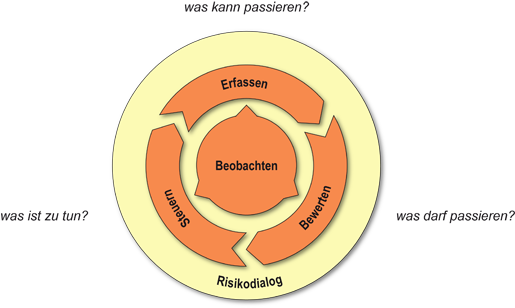 Es umfasst die regelmässige Identifikation von Risiken und deren Bewertung im Hinblick auf ihre gesellschaftliche Akzeptanz, wodurch der Handlungsbedarf und die Prioritäten festgelegt werden.