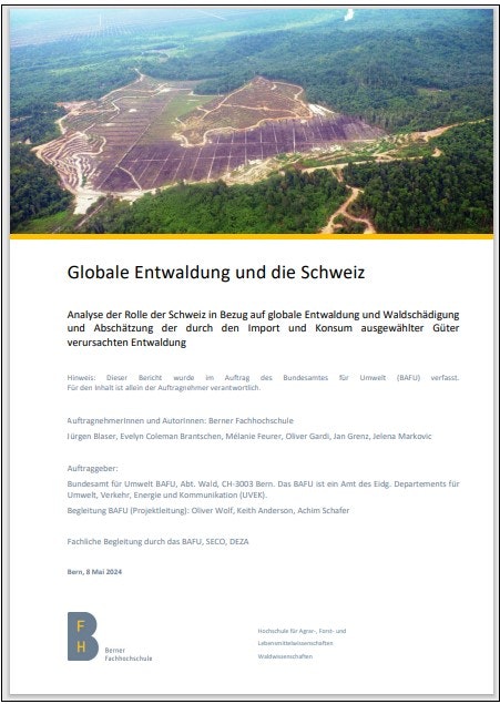 Analyse der Rolle der Schweiz in Bezug auf globale Entwaldung und Waldschädigung und Abschätzung der durch den Import und Konsum ausgewählter Güter verursachten Entwaldung.