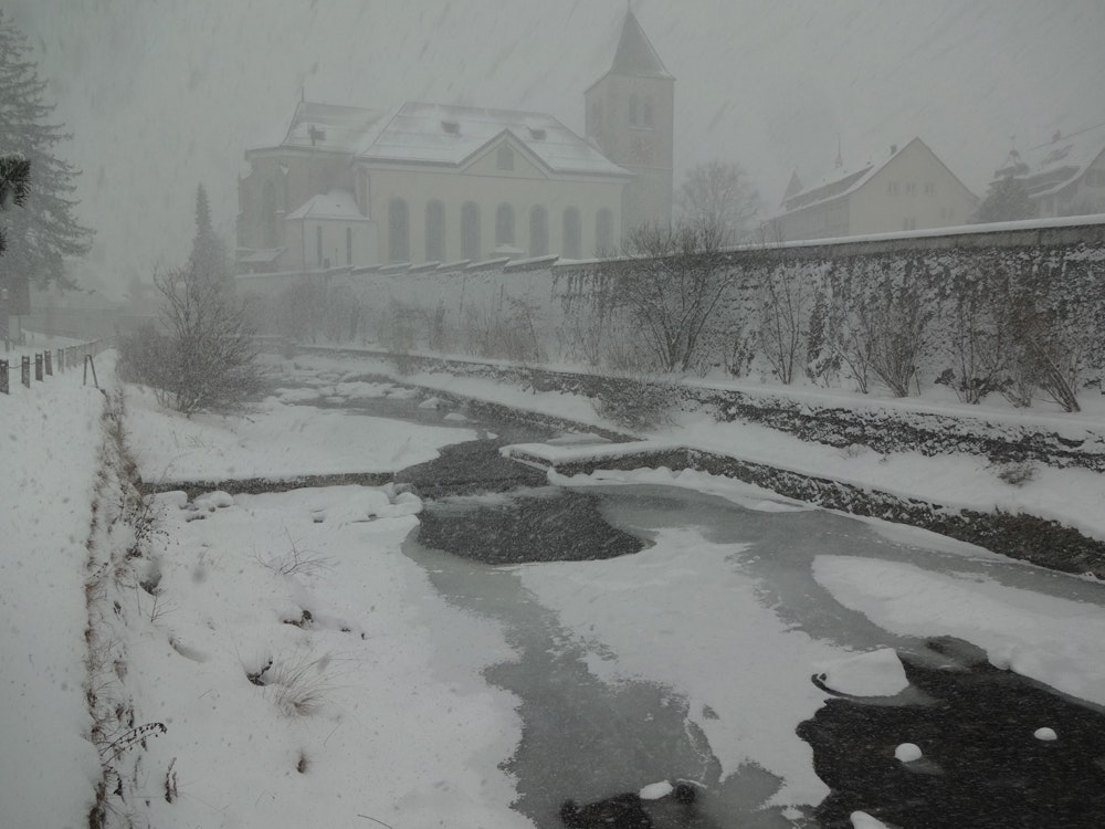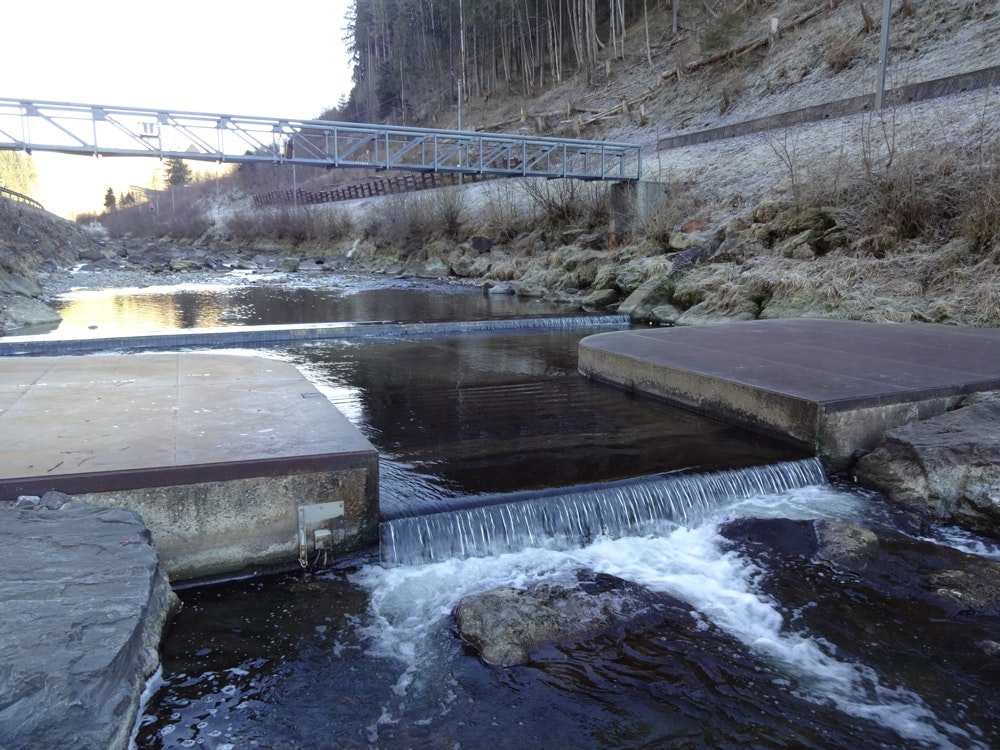 Bleiben die Temperaturen über eine längere Zeit deutlich unter dem Gefrierpunkt, treten bei den Messstationen Vereisungen auf. Die Folge sind Messwerte, die durch die Eisbildung verändert oder nicht repräsentativ sind für den gesamten Querschnitt. Die Ganglinien der Rohdaten weisen bei diesen Messbedingungen viele Ausreisser nach oben oder nach unten auf. Bei solchen Messbedingungen ist es jeweils wertvoll, wenn die Pegelstände mit zwei verschiedenen Messgeräten erfasst werden. Dadurch kann bestimmt werden, ab wann Fehler bei der Pegelstandsmessung auftreten und wie gross die Abweichungen zu den effektiv repräsentativen Messwerten sind. Die gemessene Ganglinie der Station Thur-Jonschwil der letzten Wochen zeigt deutlich das Auftreten solcher Vereisungseffekte (siehe Ganglinie der letzten 40 Tage als PDF). In Gebirgsbächen wie zum Beispiel dem Rosegbach im Engadin sind im Winter zeitweise gar keine kontinuierlichen Pegelstands-Messungen möglich, da der Bach über das gesamte Profil zugefroren ist.