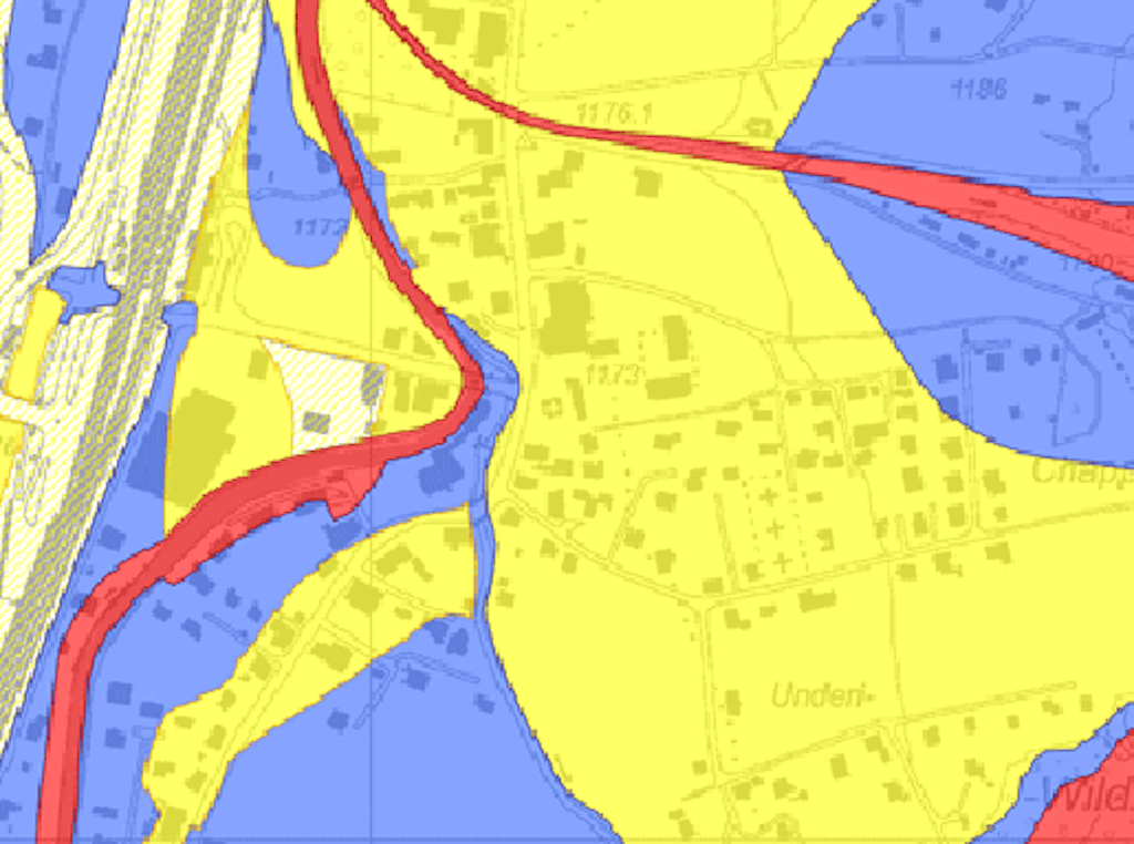 Die Karte zeigt, wo potenzielle Gefahr durch Oberflächenabfluss besteht. Sie deckt die ganze Schweiz ab, sowohl das besiedelte wie auch das nicht besiedelte Gebiet und ist elektronisch frei verfügbar.