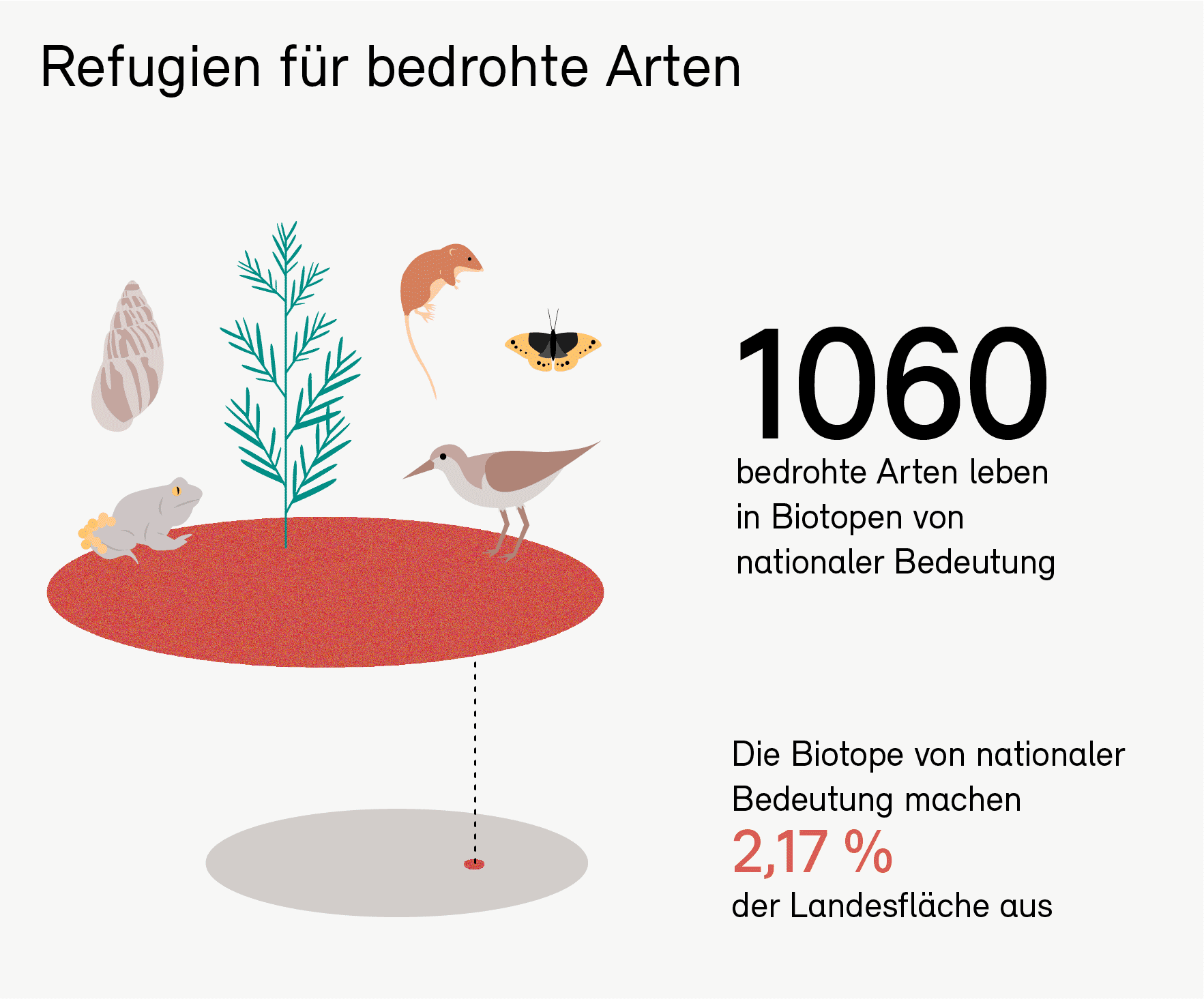 Rund 7000 solcher Gebiete gibt es in der Schweiz. Diese bedecken insgesamt eine Fläche so gross wie der Kanton Schwyz. In den Schutzgebieten werden die kostbarsten Reste jener Lebensräume erhalten, die für die Schweiz typisch und charakteristisch sind (siehe Kasten Kurzporträt) und in den vergangenen Jahrhunderten grosse Verluste erlitten haben.