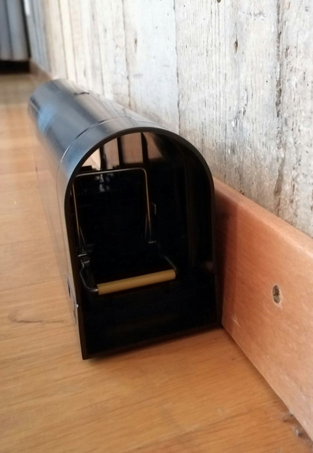 Schlagfallentunnel an der Wand aufgestellt. — © BAFU Bei einer oder sehr wenigen Mäusen oder Ratten in der Wohnung können Fallen zum Fangen von Nagern eingesetzt werden. Im Handel werden verschiedene Fallen angeboten. Eine kompetente Beratung kann über die korrekte Anwendung und die Gefahren informieren und ein geeignetes Modell empfehlen. Laut dem Schweizer Tierschutz STS sind Schlagfallen die empfehlenswerteste Methode (Schweizer Tierschutz STS-Merkblatt: Schadnager-Bekämpfung).