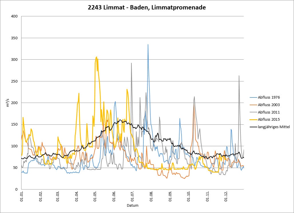 Vergleich Abfluss der Fliessgewässer mit den Trockenjahren 2011, 2003 und 1976
