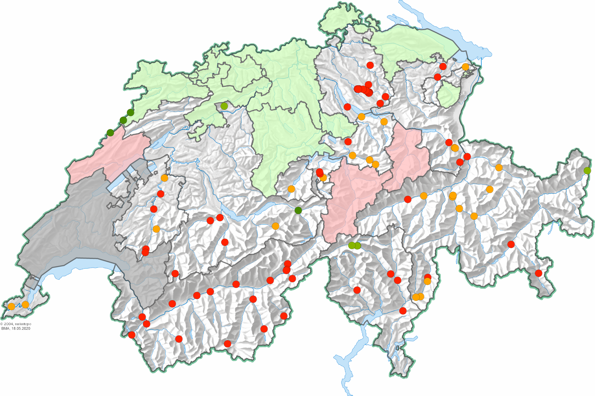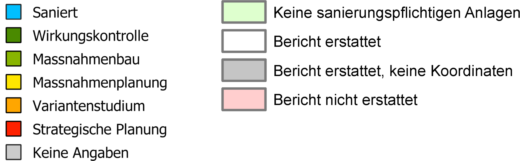 Gemäss den strategischen Planungen der Kantone im Jahr 2014 besteht bei rund 100 Wasserkraftanlagen eine Sanierungsbedarf, um die negativen Auswirkungen von Schwall-Sunk auf die Lebensgemeinschaften im Gewässer zu reduzieren. Alle vier Jahre berichten sie über den Stand der Umsetzungsarbeiten.