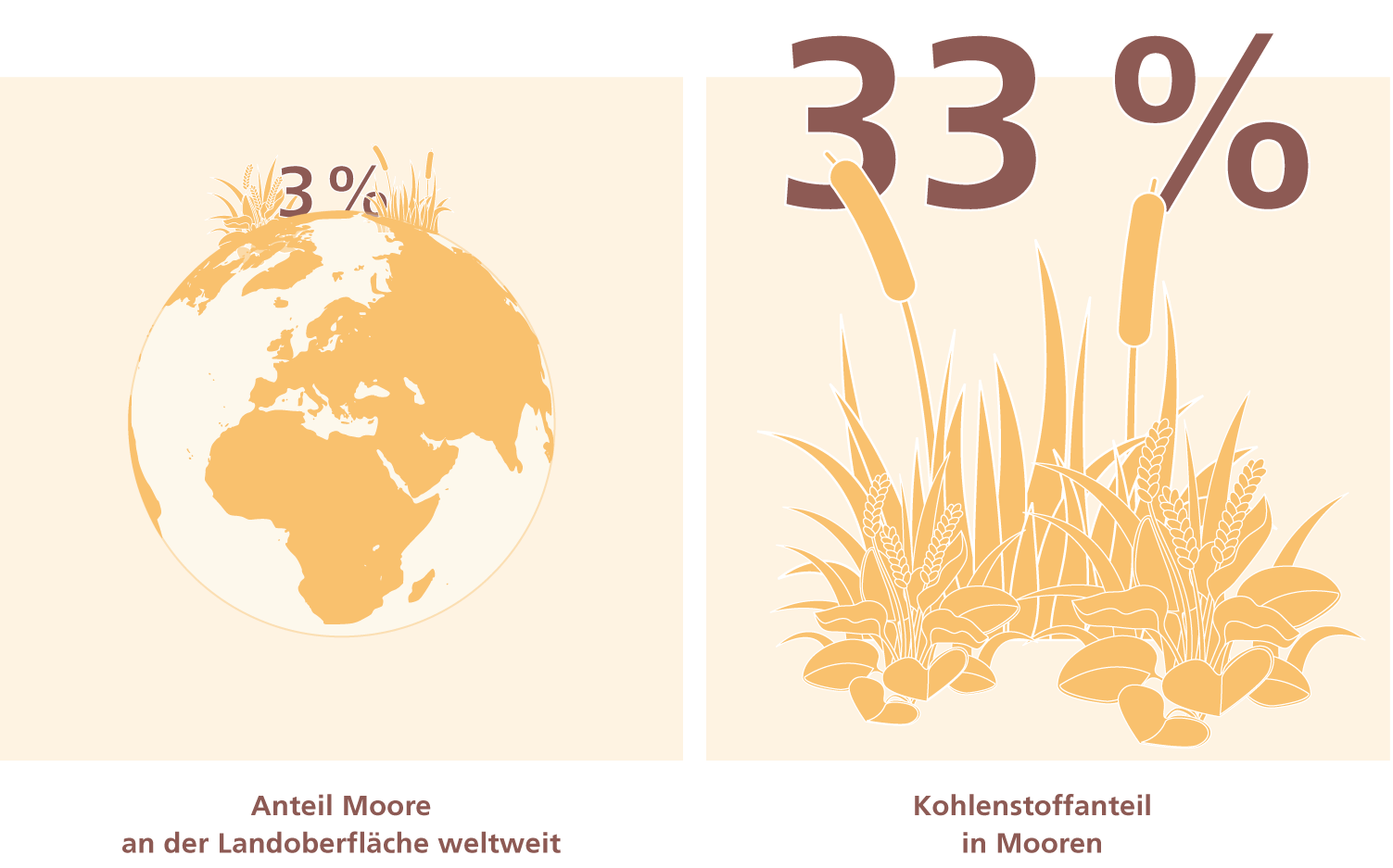 Moorböden wirken wie ein Schwamm für schädliche Klimagase und spielen somit eine wichtige Rolle für das globale Klimagleichgewicht. Moore machen weltweit zwar nur 3 Prozent der Landoberfläche aus, speichern aber doppelt soviel Kohlenstoff wie alle Wälder zusammen. Insgesamt finden sich hier ein Drittel der Kohlstoffvorräte, die in Böden gebunden sind. Dies ist das Ergebnis langwieriger Prozesse. Moore entstehen, wenn Pflanzen an sehr nassen Standorten verrotten. Dabei wird aus ihnen praktisch ohne Sauerstoff ein Moor-Substrat. Und das passiert sehr langsam: Um einen Meter zu wachsen, braucht ein Moor tausend Jahre.