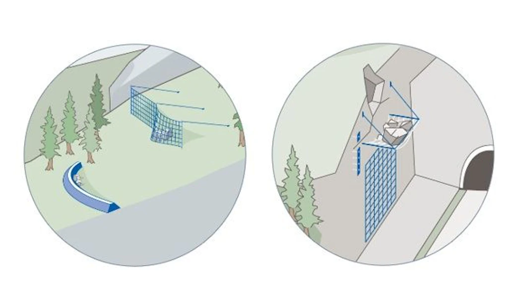 Steinschlagschutznetze, Schutzdämme und Felssicherung