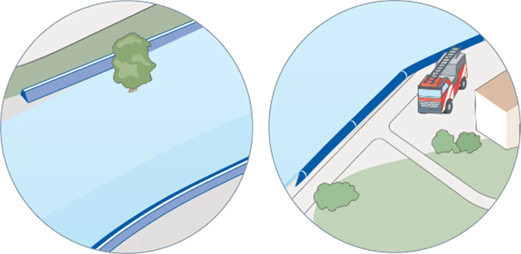 Hochwassersperren und -dämme verhindern Überflutungen und schützen die Infrastruktur und die umliegenden Häuser. Mobile Beaverschläuche werden dort eingesetzt, wo es keine baulichen Schutzmassnahmen gibt.
