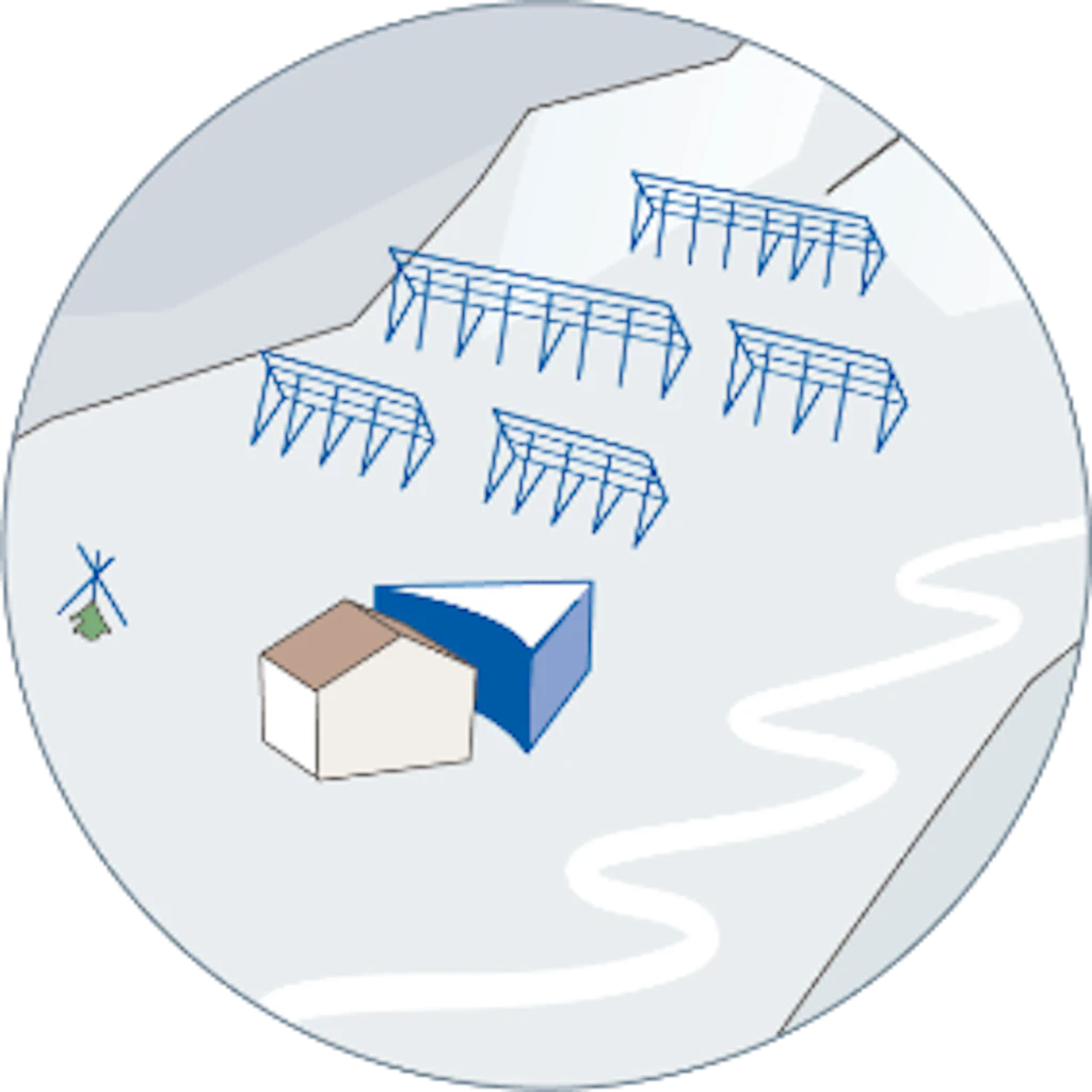 Mit dieser technischen Lösung kann eine Lawine seitlich von einem Gebäude abgeleitet werden.
