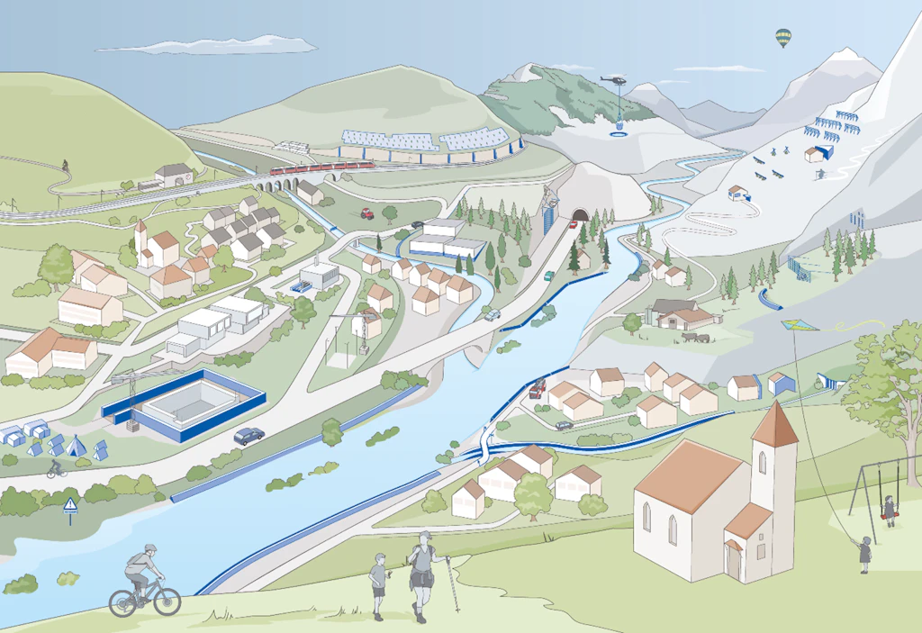 Überall in der Schweiz ist man mit Naturgefahren konfrontiert – heute genauso wie in Zukunft. Ziel der gemeinsamen Anstrengungen aller Akteur/innen dieser Verbundaufgabe ist es, einen sicheren Lebens- und Wirtschaftsraum Schweiz zu erhalten. Wir alle können von Naturgefahren betroffen sein – und «was alle angeht», so schrieb einst Friedrich Dürrenmatt, «können nur alle lösen».