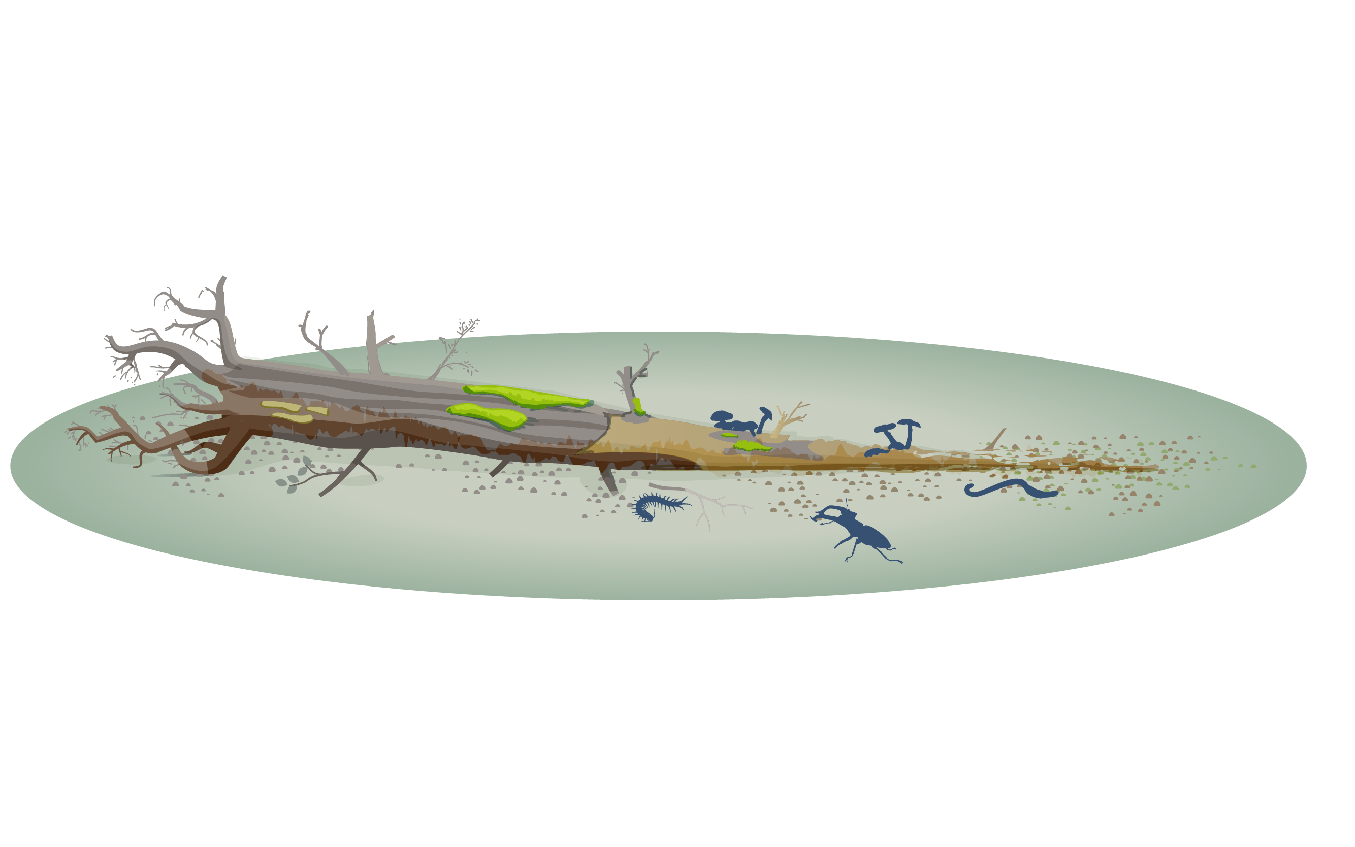 Sogenanntes Totholz zieht sie magisch an. Hier legen sie ihre Eier ab. Daraus schlüpfen dann Larven, die teilweise über viele Jahre im Holz leben und sich täglich daran satt fressen. Bis sie sich in Käfer verwandeln und weiterziehen. Totholz muss dafür aber lange liegen bleiben. Das im Wald verbleibende Holz wird schlussendlich zu Humus umgewandelt, der den Pflanzen wieder als Nahrung zur Verfügung steht.