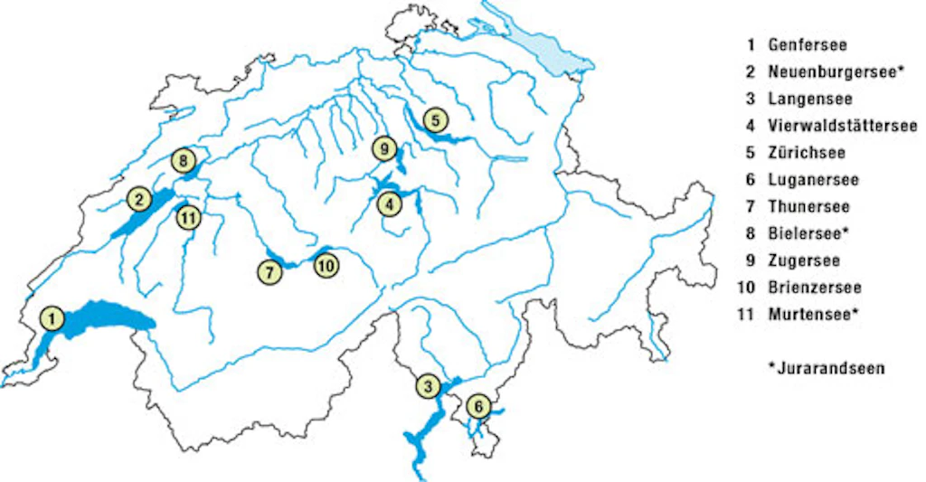 Von den Schweizer Seen mit einer Seefläche von mehr als 20 km2 werden die meisten reguliert. Ausnahmen sind der Bodensee und der Walensee.