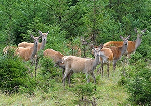 Wildlebende Huftiere (Schalenwild) können die natürliche Waldverjüngung hemmen, wenn sie zu viele Jungbäume verbeissen. Dies geschieht, wenn die Bestände zu gross sind oder sie sich zum Beispiel aufgrund von Störungen im Lebensraum Wald ungünstig verteilen. Das BAFU hat für den Umgang bei Wald-Wild-Konflikten eine Vollzugshilfe erarbeitet.