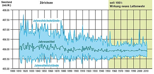 Seeregulierungen haben eine dreifache Wirkung: Sie dämpfen Hochwasserspitzen, heben Niedrigwasserstände an und sorgen bei Mittelwasserständen für einen naturnahen Verlauf der Seestände.