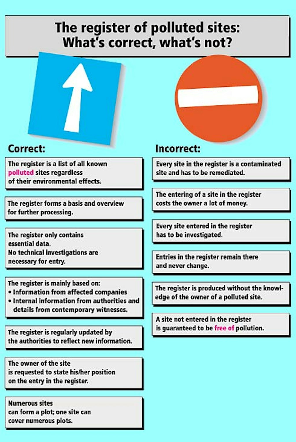 The publically accessible register is not only intended to contribute to general transparency and clear relationships. It is also intended to help minimise today's insecurities in construction project planning, property transactions or loan procedures where polluted sites are concerned.