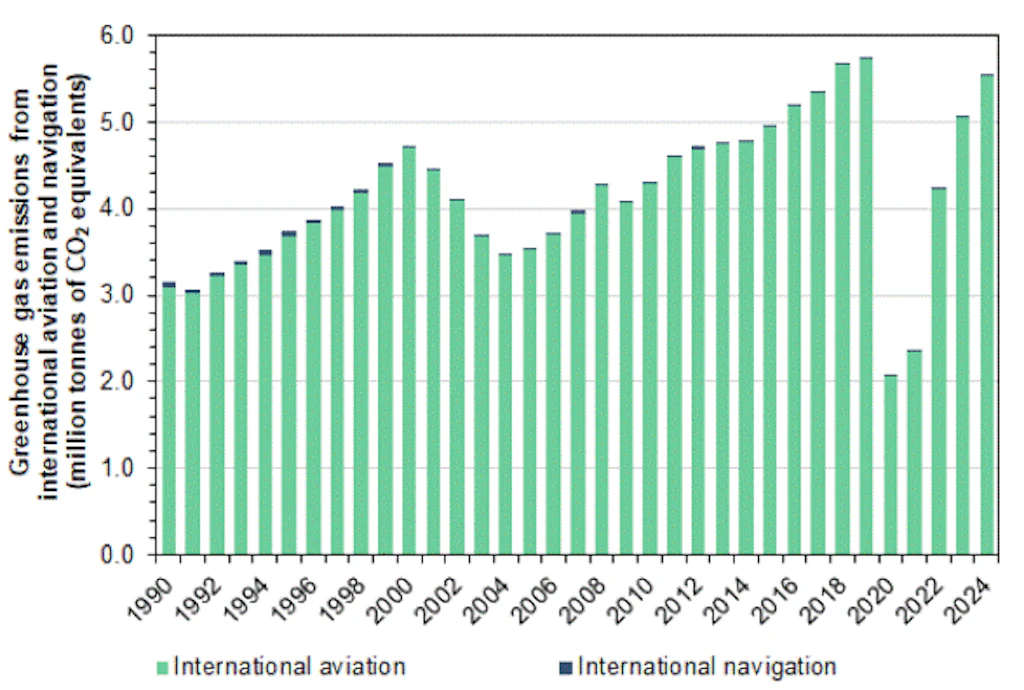 The greenhouse gas inventory shows the emissions from national and international aviation separately.
