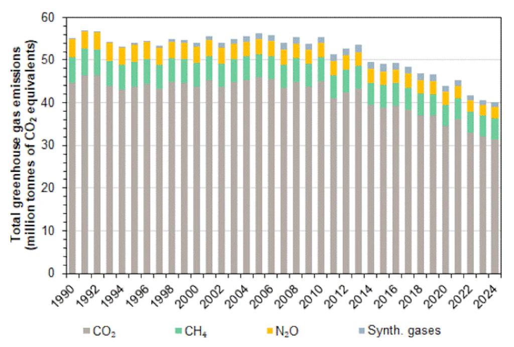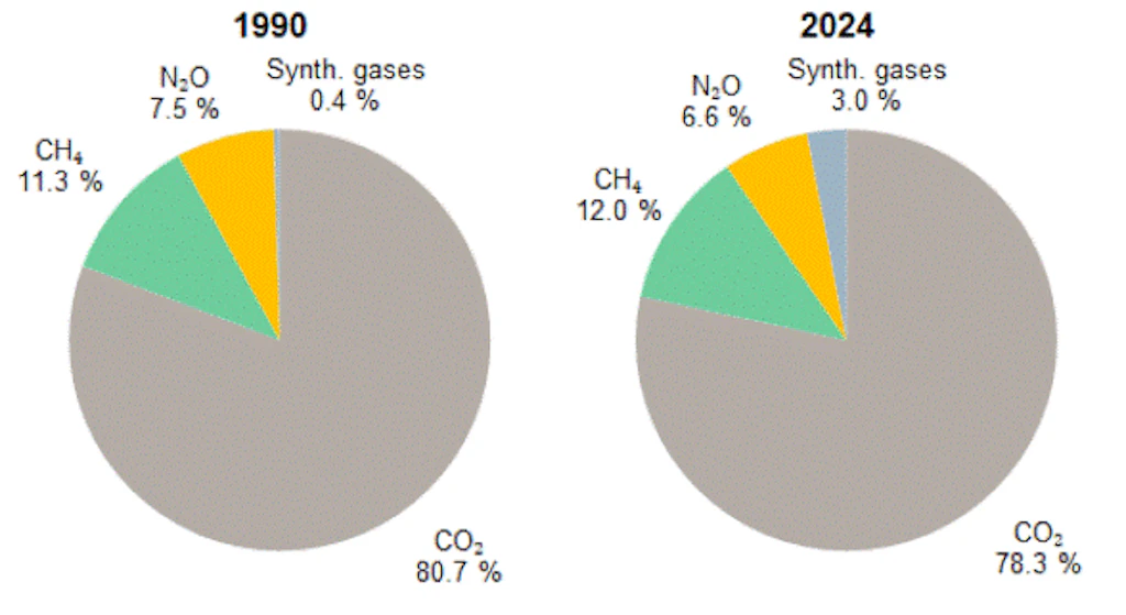 Switzerland’s greenhouse gas inventory is updated annually in April with data from the year before last. The following data are based on the April 2026 inventory (next update: April 2027).