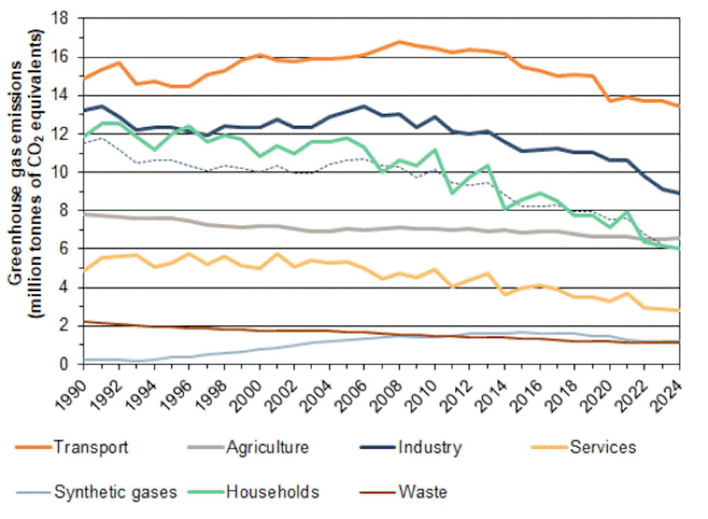 Breakdown of Switzerland’s greenhouse gas emissions by sector