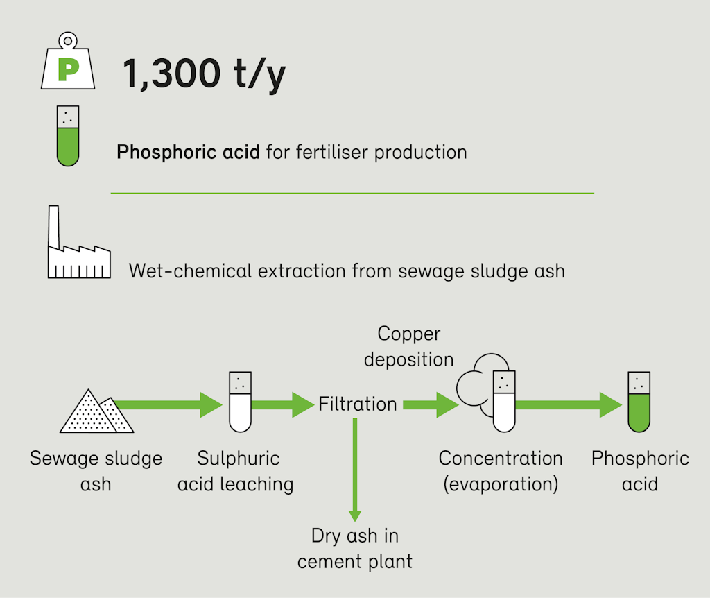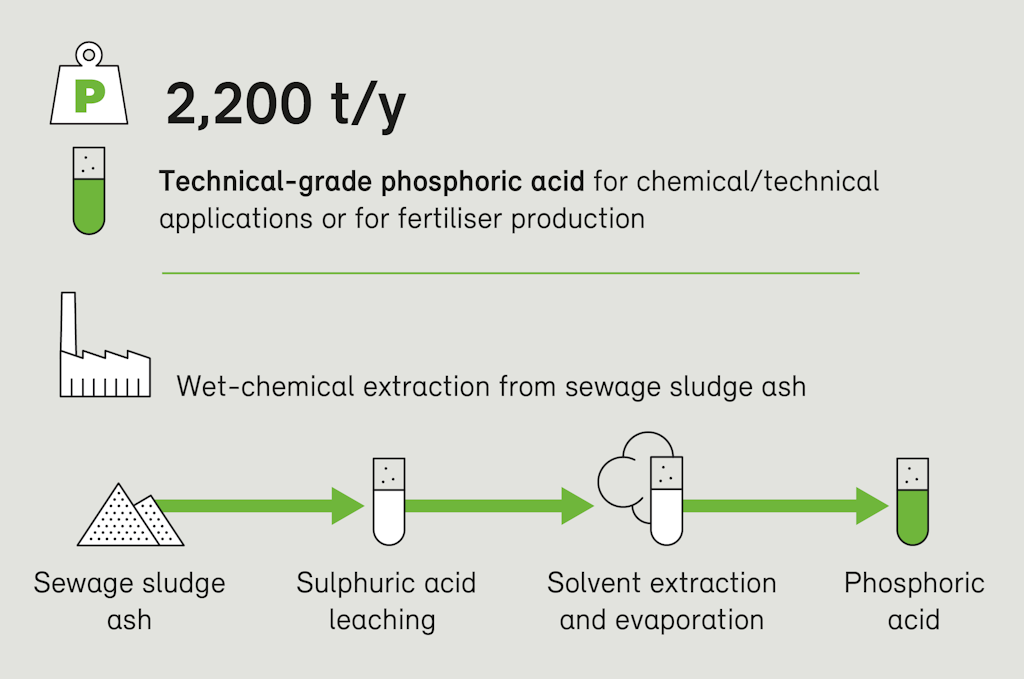 The Bazenheid (ZAB) waste management association is developing a large plant to implement its phosphorus recovery process at its site in Bazenheid (SG). The project partners are the wastewater interest group Klärschlamm-Interessengemeinschaft Ost (KIGO), wastewater association Altenrhein (AVA), Landi Aachtal (fruit growers' agricultural association Oberaach TG, OGO), ZAB and the TMF Extraktionswerk Ltd. The enterprise will take the form of a public limited company, 'P-AG Bazenheid'. The plant is designed to produce P30, P38 or TSP46 fertiliser through wet-chemical digestion of sewage sludge, animal and bone meal ash using phosphoric acid. The TSP46 (triple superphosphate fertiliser containing 46% phosphate) will be sold in Switzerland as a fertiliser or for processing into a mixed fertiliser. P4L's technical-grade phosphoric acid is suitable for the production of TSP46. Fertilisers containing 30% or 38% phosphate (P30, P38) are intended for export. However, they can also be used in Swiss agriculture. REALphos phosphoric acid for fertiliser can be used for the production of P30 and P38 fertiliser. According to the project information, the plant should produce 14,000 tonnes of TSP46 fertiliser containing 3,000 tonnes of phosphorus and 15,000 tonnes of P30/38 fertiliser containing 2,300 tonnes of phosphorus annually. Construction will start in spring 2025 with a view to launching operations in summer 2026.