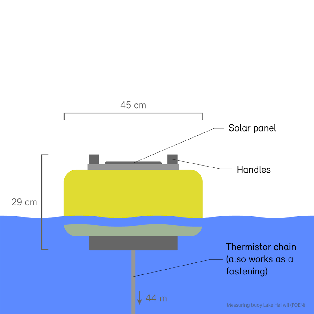 Lake Hallwil (AG) has already been adequately analysed and has been artificially aerated for 35 years. The new buoy is located near existing data buoys that measure water quality.