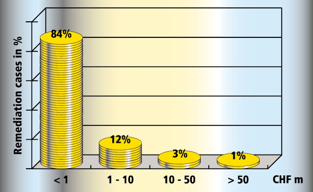 Not all remediations are a matter of millions: Many small cases cost a few hundred thousands up to one million Swiss francs. Remediations costing tens of millions of francs or more are, happily, the exception.