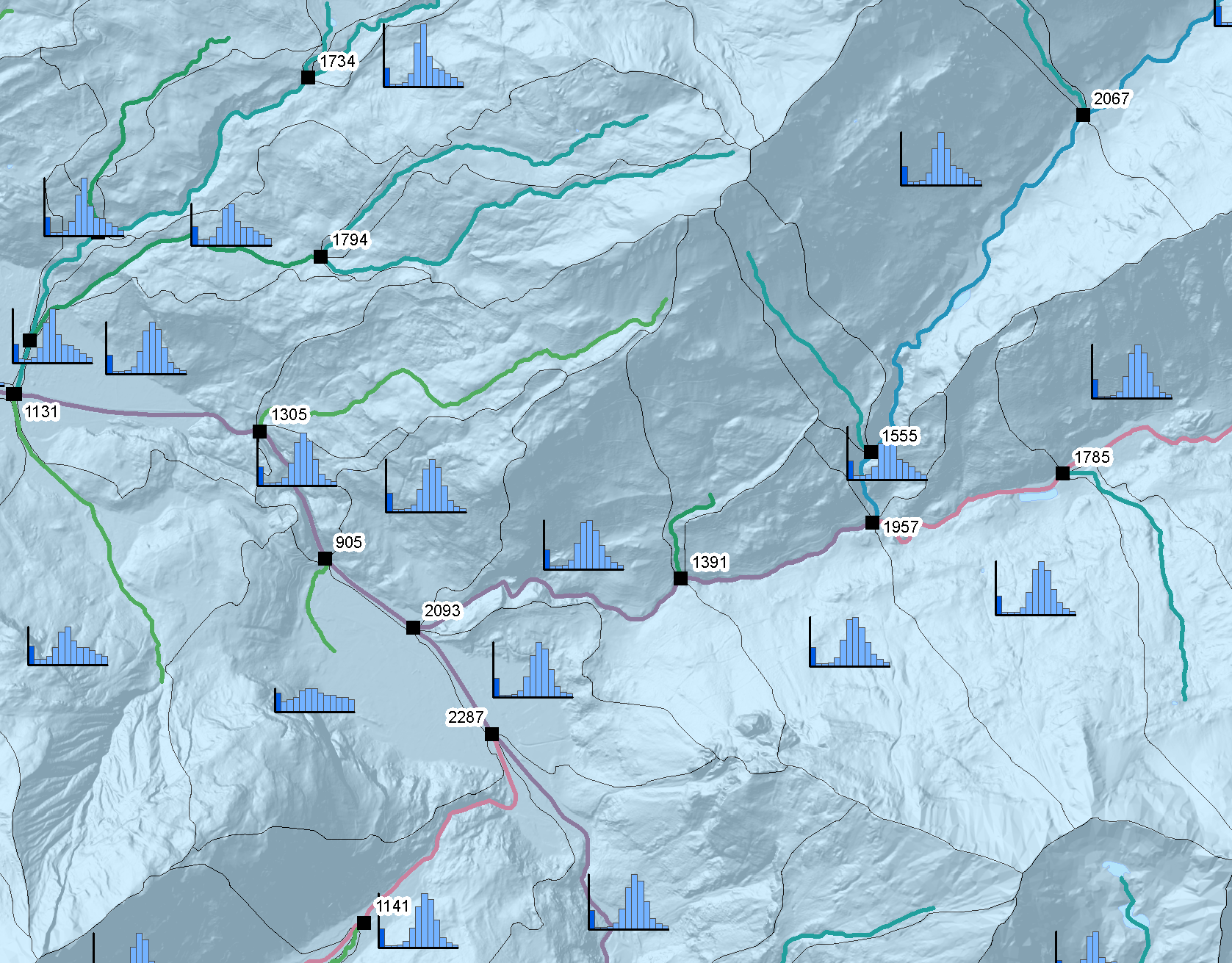 The dataset is a survey of hydrological conditions of interest to the whole of Switzerland. It has no legal effect and in no way constitutes a binding guideline for the definition of catchment areas.