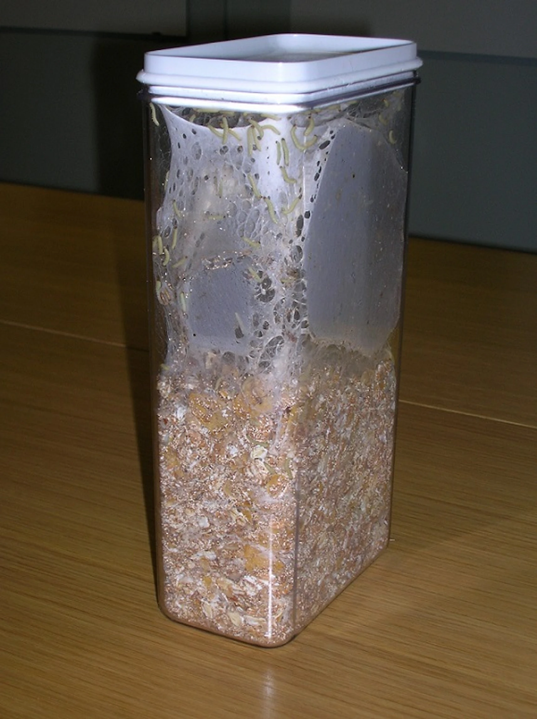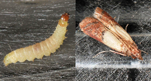 Les ravageurs des denrées stockée peuvent causer d’importants dommages aux provisions alimentaires. En général, leurs larves se développent dans des produits secs d’origine végétale ou animale tels que des céréales, des gâteaux, des légumineuses, des fruits secs, des sucreries, du fromage, de la viande, du tabac, du thé et de la nourriture pour animaux. Une fois les larves repues, elles se transforment en chrysalides. La larve de la pyrale des fruits secs recherche les fentes et les fissures pour accomplir sa nymphose. Selon l’espèce et la température, la métamorphose de la larve en coléoptère ou en pyrale peut prendre jusqu’à trois mois.