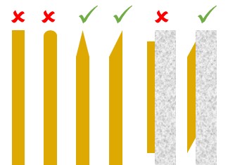 Il est préférable de renoncer aux surfaces horizontales, sur lesquelles peut s’accumuler l’eau. Afin de permettre un écoulement rapide de l’eau, les surfaces comme les piquets de clôture ou le coffrage de la façade doivent être biseautées ou taillées en pointe. Les billots de bois peuvent en outre être recouverts d’un capuchon en métal, d’un élément en bois interchangeable ou d’un revêtement.