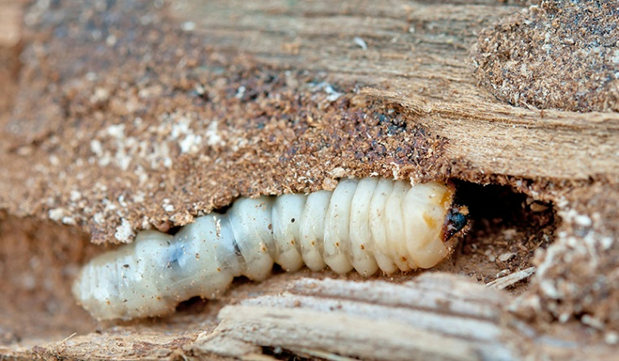Larve de la petite vrillette Les insectes qui détruisent le bois se nourrissent des matières qui le composent et peuvent infliger des dommages considérables. Ils assaillent le bois qui présente un certain taux d’humidité. Le Lycte brun (vers du bois), par exemple, infeste le bois dont le taux d’humidité est de 16 % ou plus.