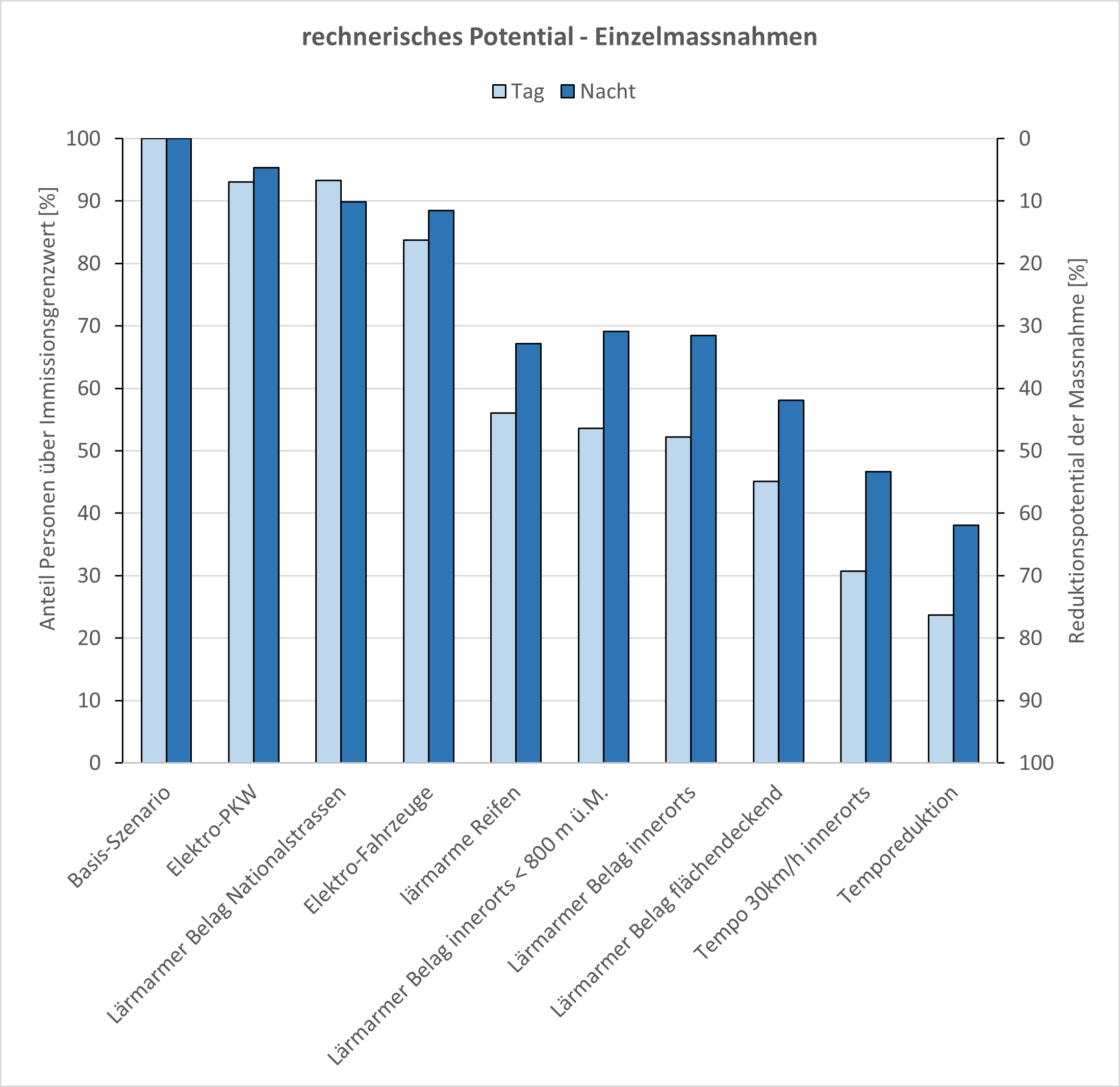 Pour lutter contre le bruit, la loi sur la protection de l’environnement et l’ordonnance sur la protection contre le bruit misent en priorité sur des mesures s’attaquant directement à la source du bruit, telles que la pose de revêtements silencieux et la limitation de la vitesse. En effet, une vitesse plus faible réduit le bruit de roulement et les revêtements silencieux retiennent une partie du bruit grâce à leurs petites cavités. Il faut en effet savoir qu’ à partir d’environ 25 km/h déjà, le bruit de roulement des voitures prend le dessus sur celui du moteur.