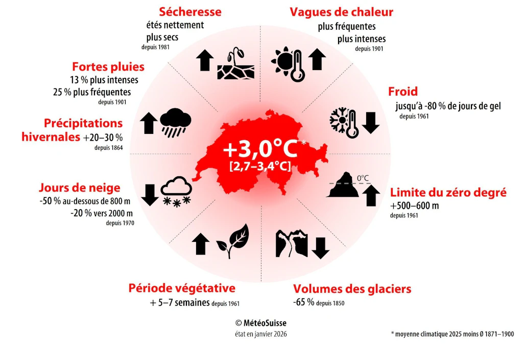 • La Suisse est particulièrement touchée par le réchauffement climatique
