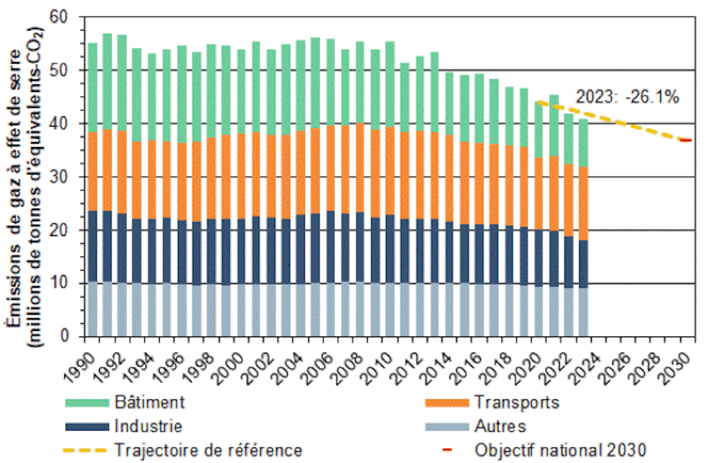 L’ordonnance sur le CO2 définit des valeurs indicatives pour les différents secteurs en ce qui concerne les émissions maximales autorisées en 2030 par rapport aux émissions de 1990 :