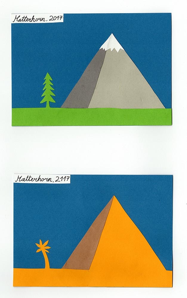 17.08.2017 - «Les changements climatiques» en images: tel était le titre du concours organisé par l’OFEV au printemps 2017, qui s’adressait aux élèves des écoles suisses d’art, de graphisme et de design reconnues par l’État. Ces derniers étaient invités à créer des images afin de contribuer à sensibiliser le public et certains groupes cibles à la problématique des changements climatiques. Les images que nous avons reçues sont visibles dans notre galerie; celles que nous avons considérées comme les meilleures apparaissent en premier.