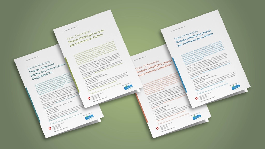 Les nouvelles fiches d'information sur l'adaptation aux changements climatiques offrent un aperçu rapide des risques climatiques les plus fréquents pour différents types de communes en Suisse, notamment les communes de montagne, du Plateau, du Tessin, les agglomérations et les villes. Parmi les risques les plus importants figurent la fréquence accrue des périodes de sécheresse estivales, la multiplication des vagues de chaleur, les fortes précipitations et les hivers peu enneigés.