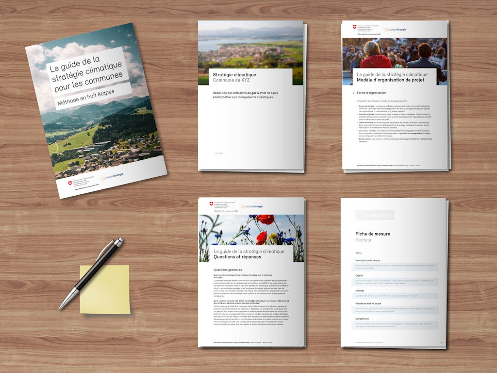 La Suisse s’est engagée à atteindre l’objectif climatique de zéro émission nette d’ici à 2050. Le guide de la stratégie climatique pour les communes –une méthode en huit étapes – a pour but d’aider les communes à atteindre cet objectif ambitieux. Il leur montre, en outre, comment lutter contre les effets des changements climatiques. Ce guide, rédigé en collaboration avec le programme Société à 2000 watts de l’Office fédéral de l’énergie/SuisseÉnergie, vise à soutenir les communes de petite et moyenne taille dans l’élaboration d’une stratégie climatique systématique.