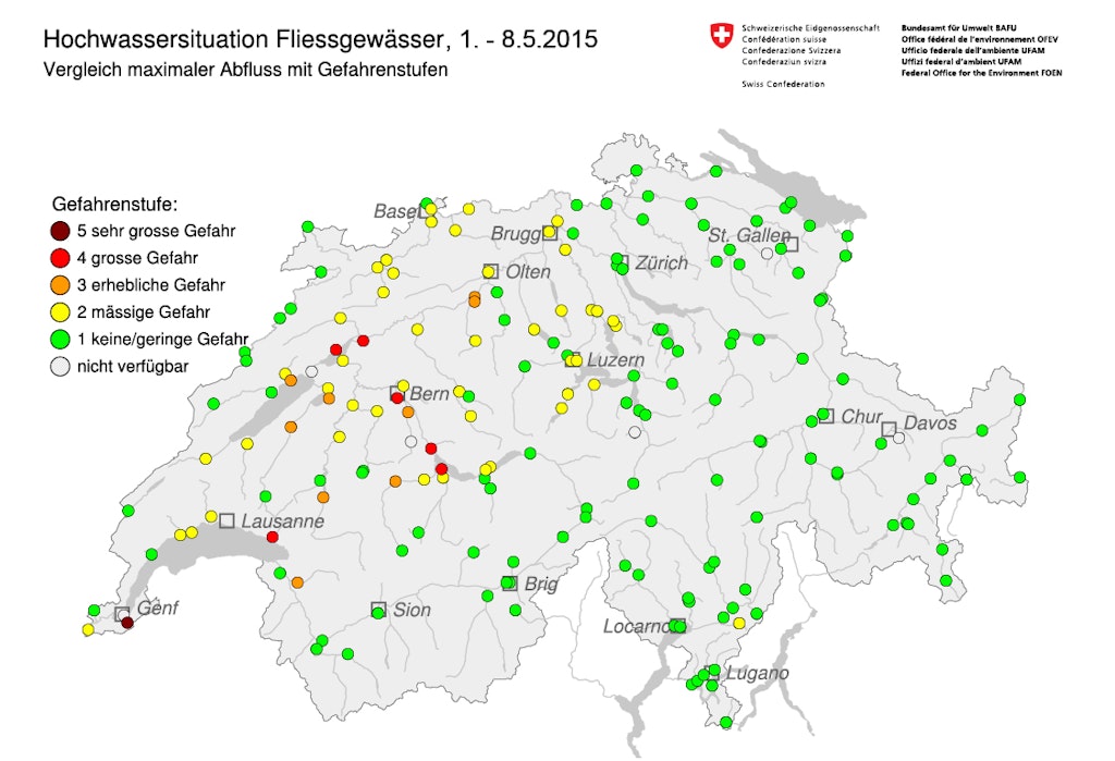 Crues au nord des Alpes et dans l’ouest de la Suisse début mai 2015