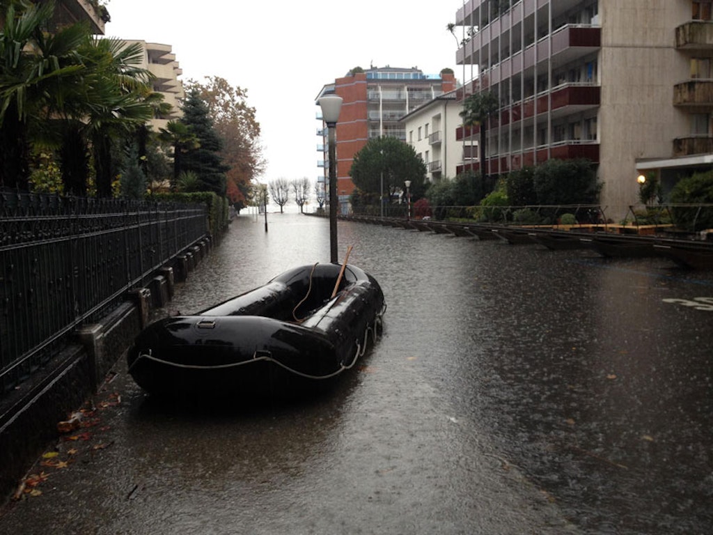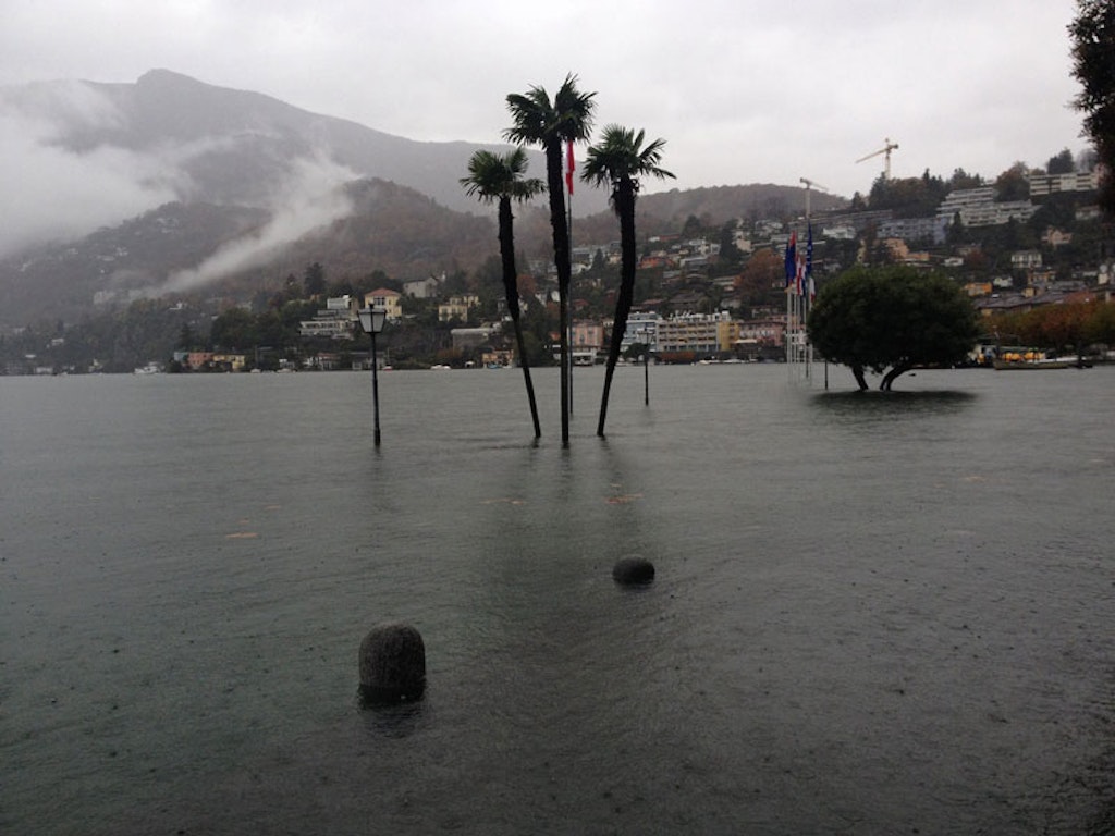 La somme des débits des affluents des lacs Majeur et de Lugano a entraîné une forte élévation des niveaux des deux lacs. Depuis le début des alertes officielles émises par l'OFEV, c'est la première fois qu'une alerte de niveau 5 a été donnée. Le lac Majeur a atteint le niveau de danger 5 (195,75 m s. m.) mercredi matin 12 novembre, et un premier pic de 196,40 m s. m. a été enregistré jeudi 13 novembre. Après une courte accalmie suivie d'un nouvel épisode de précipitations abondantes, le niveau du lac s'est une nouvelle fois élevé pour atteindre, dimanche 16 novembre 2014, la cote de 196,41 m s. m. Une partie de la ville de Locarno, la plaine de Magadino et plusieurs zones situées près des berges se sont retrouvées sous les eaux.