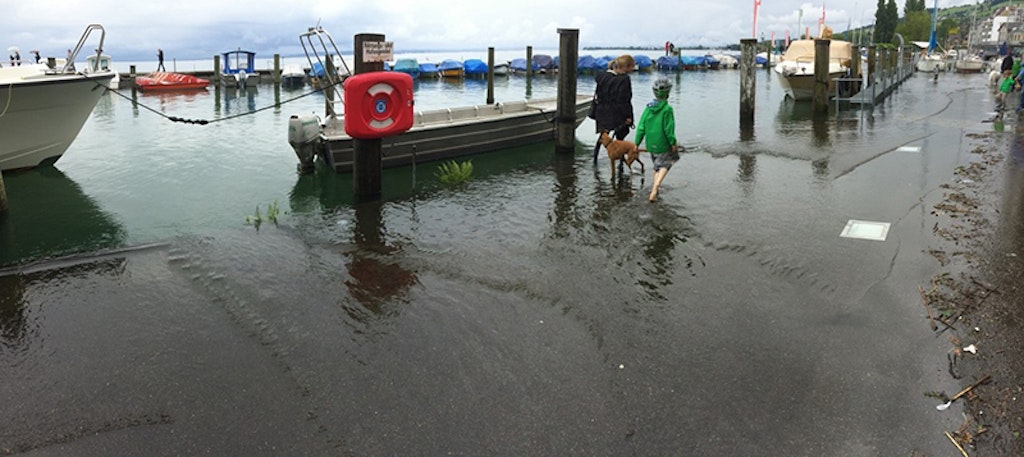 Les niveaux des lacs ont également fortement augmenté dans l’ensemble de la Suisse. Les débits de leurs effluents étaient par conséquent également très élevés. Le Léman, le lac Majeur et les lacs de Lugano, des Quatre-Cantons, de Walenstadt, de Zoug et de Zurich ont atteint le niveau de danger 2. Celui de Constance a même atteint le niveau de danger 4 en dépassant la cote d’alerte de 397,15 m s.m. à Romanshorn. Contrairement à la plupart des lacs de Suisse, le lac de Constance ne peut être régulé. Son niveau dépend donc uniquement des affluents et du débit sortant du lac Inférieur, qui se déverse dans le Rhin, et ne peut être abaissé à titre préventif.