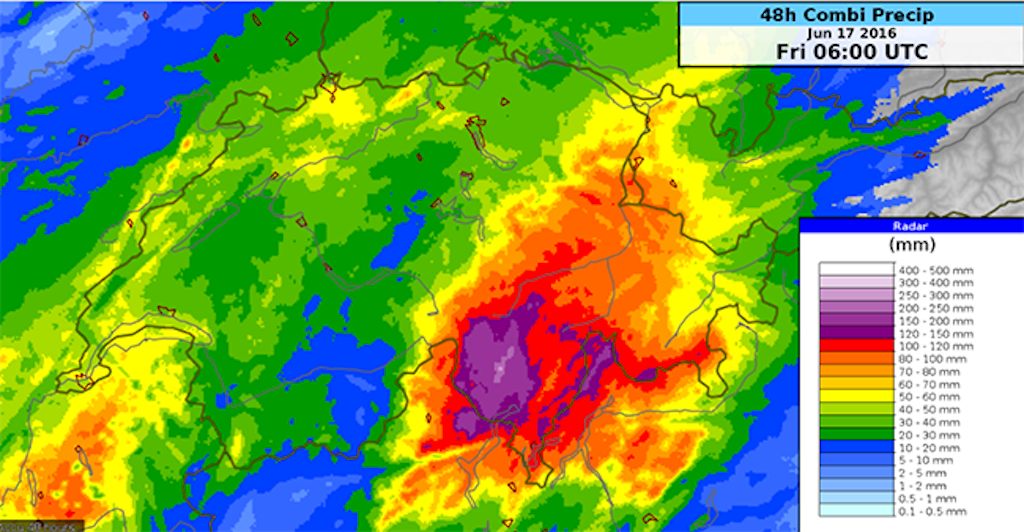 Les 16 et 17 juin derniers, de fortes précipitations, parfois persistantes et orageuses, ont touché la Suisse méridionale ainsi que les Préalpes et les Alpes centrales et orientales. Il a également plu dans d’autres régions de Suisse. Selon les informations de MétéoSuisse, il est tombé localement jusqu’à 200 mm de pluie dans le Tessin et entre 50 et 120 mm (selon la région) dans les Grisons. Des informations plus détaillées, notamment concernant l’évaluation climatologique, sont disponibles sur le site Internet de MétéoSuisse (cf. liens dans la colonne de droite).