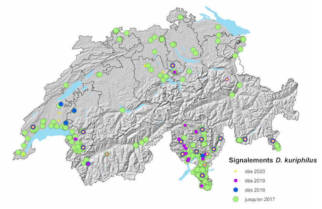 Situation d’infestation en Suisse par le cynips du châtaigner : présent, établi
