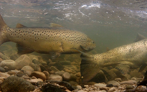 Les poissons migrateurs tels que la truite lacustre remontent les cours d’eau tous les ans pour retrouver leur frayère. Si ce déplacement demande beaucoup d’efforts, l’activité humaine le complique encore davantage. En effet, les tronçons à débit résiduel très faible peuvent gêner voire empêcher la migration piscicole.