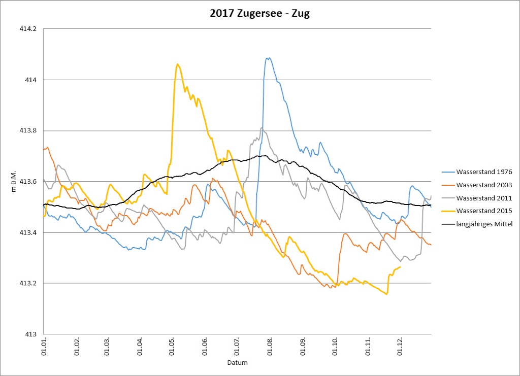 Les lacs quant à eux sont nombreux à afficher des niveaux nettement inférieurs à la moyenne saisonnière, en particulier les lacs de Zoug, des Quatre-Cantons, de Constance et de Walenstadt. Les lacs de Zurich et de Pfäffikon ont enregistré de nouveaux minima. Les lacs au pied du Jura et les lacs de Thoune et de Brienz ont en revanche des niveaux qui restent dans la moyenne saisonnière. De même, dans les Alpes, les cours d’eau alimentés par les glaciers ont, pour la plupart, des niveaux normaux, voire supérieurs pour la saison.