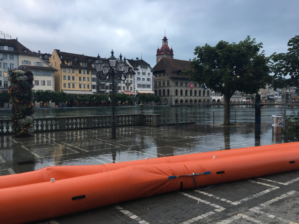 Boudins Beaver en ville de Lucerne, 17.07.2021 — © © Jörg Hammer, BAFU Environ 20 à 25 % des zones à bâtir se situent dans des zones de danger. En Suisse, près de deux tiers des bâtiments sont susceptibles d’être touchés par le ruissellement dû à de fortes pluies.